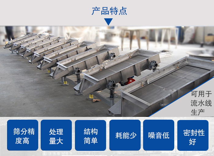 優勢 不銹鋼直線篩,是生產線中不可缺少的振動篩分設備。?主要是對各種顆粒狀和小塊狀松散固體物料的干式分級。