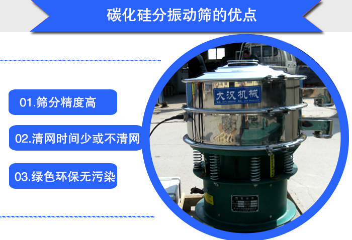 碳化硅粉是粉末狀的物料,在篩分時會出現靜電、粘附、團聚導致卡堵網的現象,所以大漢機械的技術人員推薦使用超聲波振動篩
