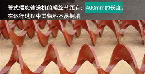 (1)管式螺旋輸送機(jī)的螺旋節(jié)距有:400mm的長度,在運(yùn)行過程中其物料不易擁堵。