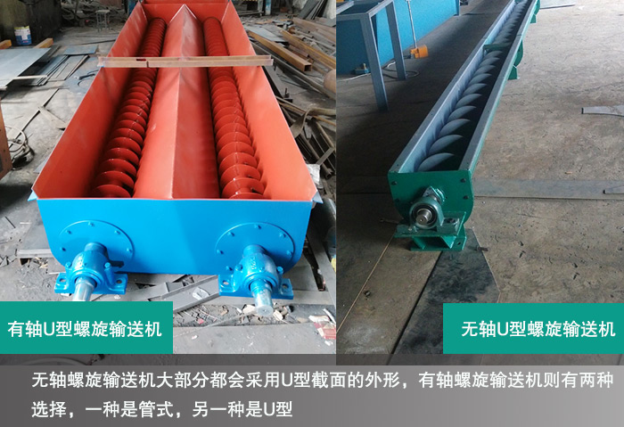 (2)有軸螺旋輸送機則有兩種選擇,一種是管式,另一種是U型,要求沒有無軸螺旋輸送機的苛刻。