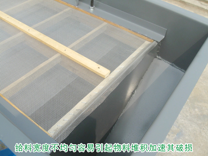在直線振動篩的篩分過程中,振動篩面的寬度決定其處理能力,長度決定其篩分效果,如果在對振動篩的給料過程中,給料量過大使設(shè)備無法對其進(jìn)行篩分,或給料寬度不均勻,引起物料堆積,都容易也使得篩網(wǎng)受力不均,加速其破損的情況。