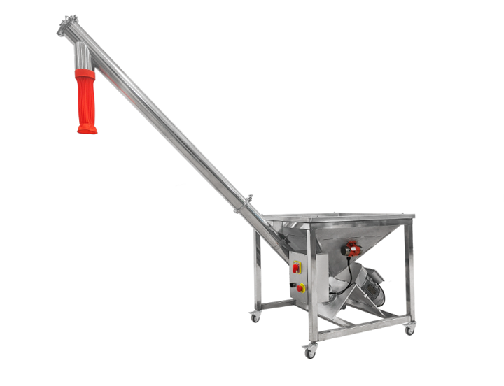 粉末螺旋輸送機利用旋轉螺旋葉片在封閉管道內推動粉末的連續輸送。其輸送能力與螺旋直徑、螺距、轉速及物料特性等因素有關,小型設備每小時可輸送1–5噸粉末,大型設備可輸送30噸。螺旋直徑在100–500毫米,長度在1–30米之間,可根據工況進行組合或定制。輸送機可以水平輸送,也可以進行傾斜布置,常用傾斜角度為15°–45°,角度越大,輸送效率越低。轉速在20–120轉/分鐘范圍內,通過變頻調速實現控制。粉末螺旋輸送機用于面粉、石灰粉、化工粉體等細粉,部分機型還可在輸送過程中實現簡單的篩分、混合或均化功能。
