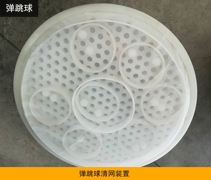 彈跳球清網(wǎng)裝置是為常見(jiàn)的清網(wǎng)裝置。其形狀為圓形,材質(zhì)可分為橡膠材質(zhì)與硅膠材質(zhì)兩種。其工作原理是均勻的分布在托球板上,一般十公分內(nèi)分布5-8個(gè)。篩機(jī)在振動(dòng)篩分的同時(shí)彈跳球也隨之跳躍擊打篩網(wǎng),從而起到清網(wǎng)的目的,常見(jiàn)的使用機(jī)型有旋振篩。