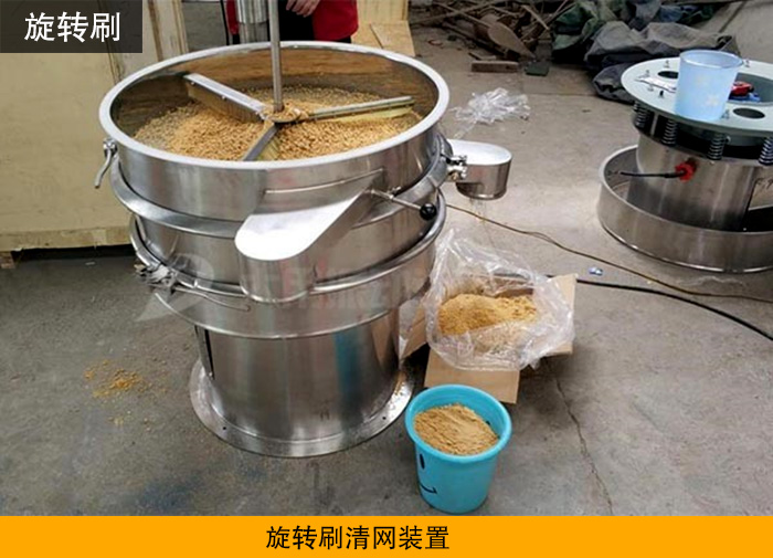 旋轉(zhuǎn)刷清網(wǎng)裝置是由圓柱形硅膠組成,將旋轉(zhuǎn)刷安裝在篩框中心位置,有聯(lián)軸器連接,啟動(dòng)篩機(jī)時(shí)旋轉(zhuǎn)刷同時(shí)啟動(dòng),從而對(duì)篩框底部進(jìn)行清網(wǎng)的工作,常用機(jī)型為搖擺篩。
