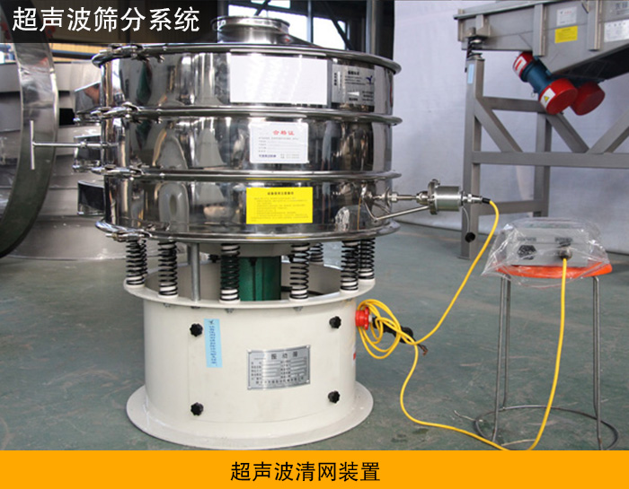 該裝置是利用超聲振動(dòng)波對(duì)篩網(wǎng)進(jìn)行清網(wǎng)工作。其主要組成部件有超聲波電源、換能器與超聲波網(wǎng)架組成。其原理是通過(guò)超聲波電源將常規(guī)用電轉(zhuǎn)換為18KHZ高頻電能,通過(guò)換能器作用在網(wǎng)架上,從而解決高精細(xì)物料的清網(wǎng)與高效篩分工作。該裝置多用于振動(dòng)篩分機(jī)中,根據(jù)需要也可改裝后用于直線(xiàn)篩或搖擺篩中。